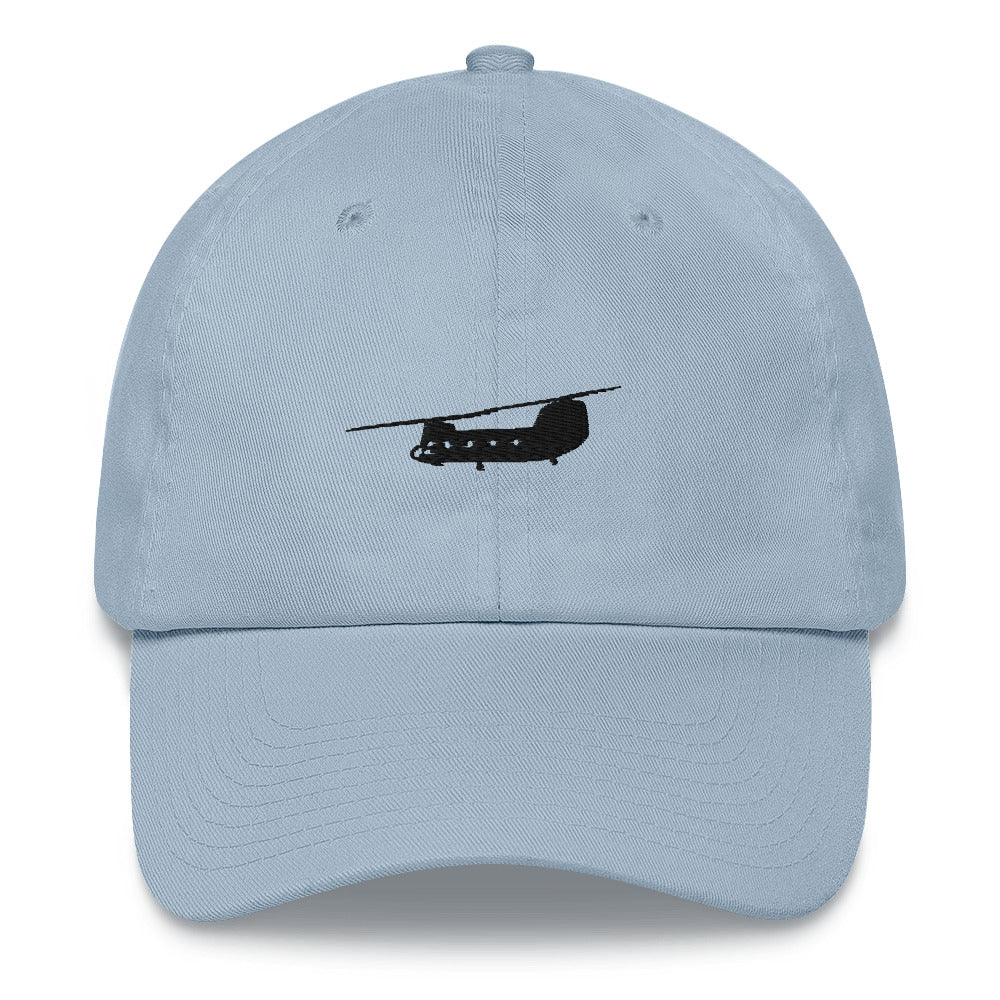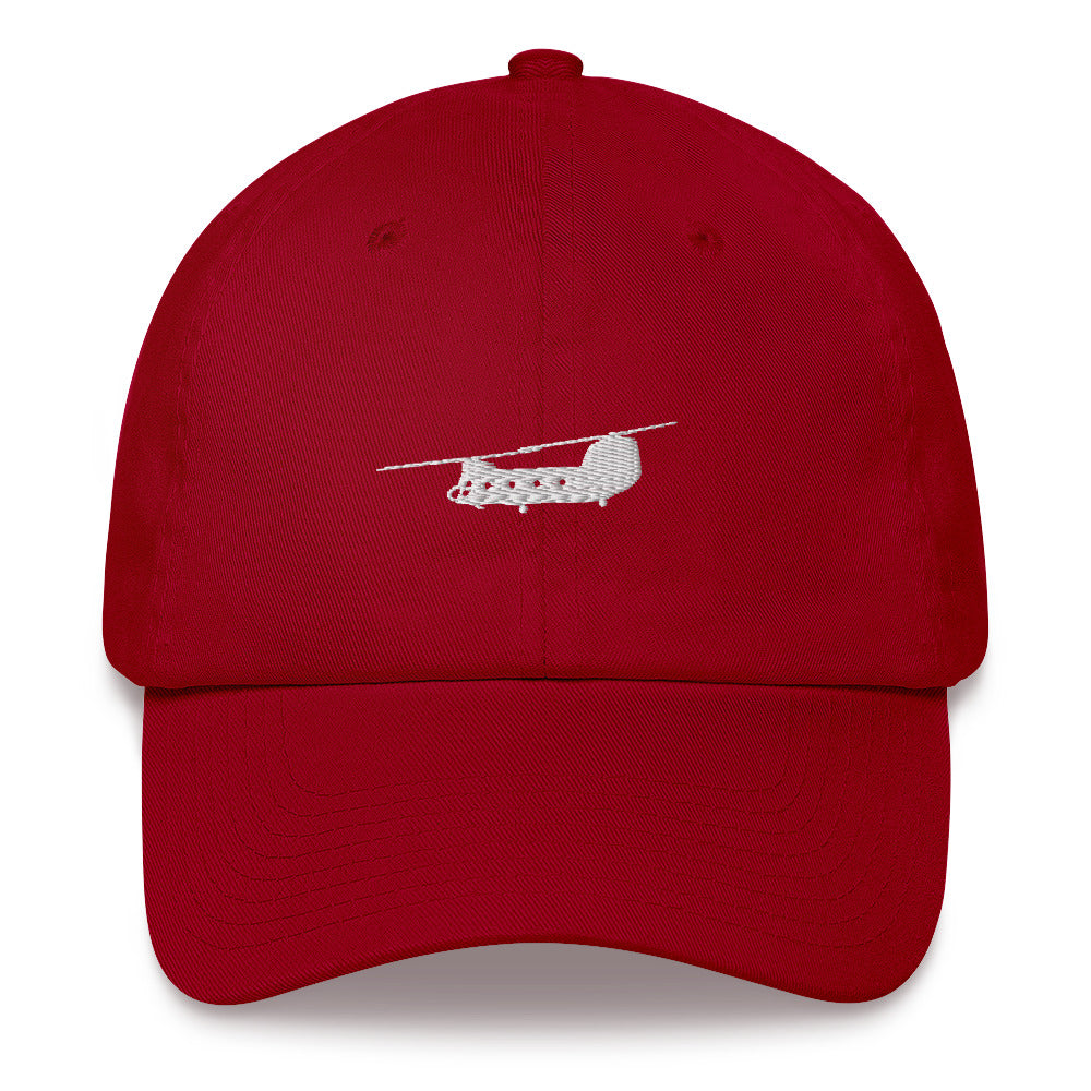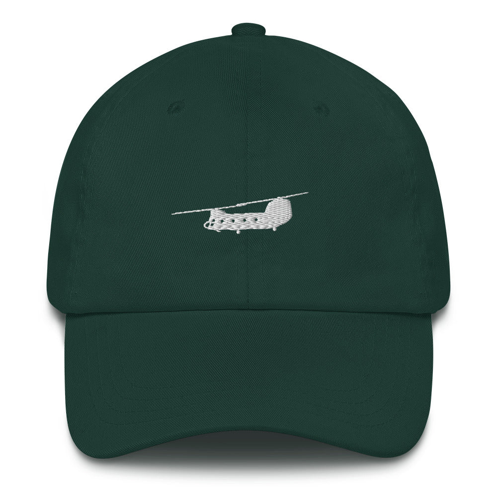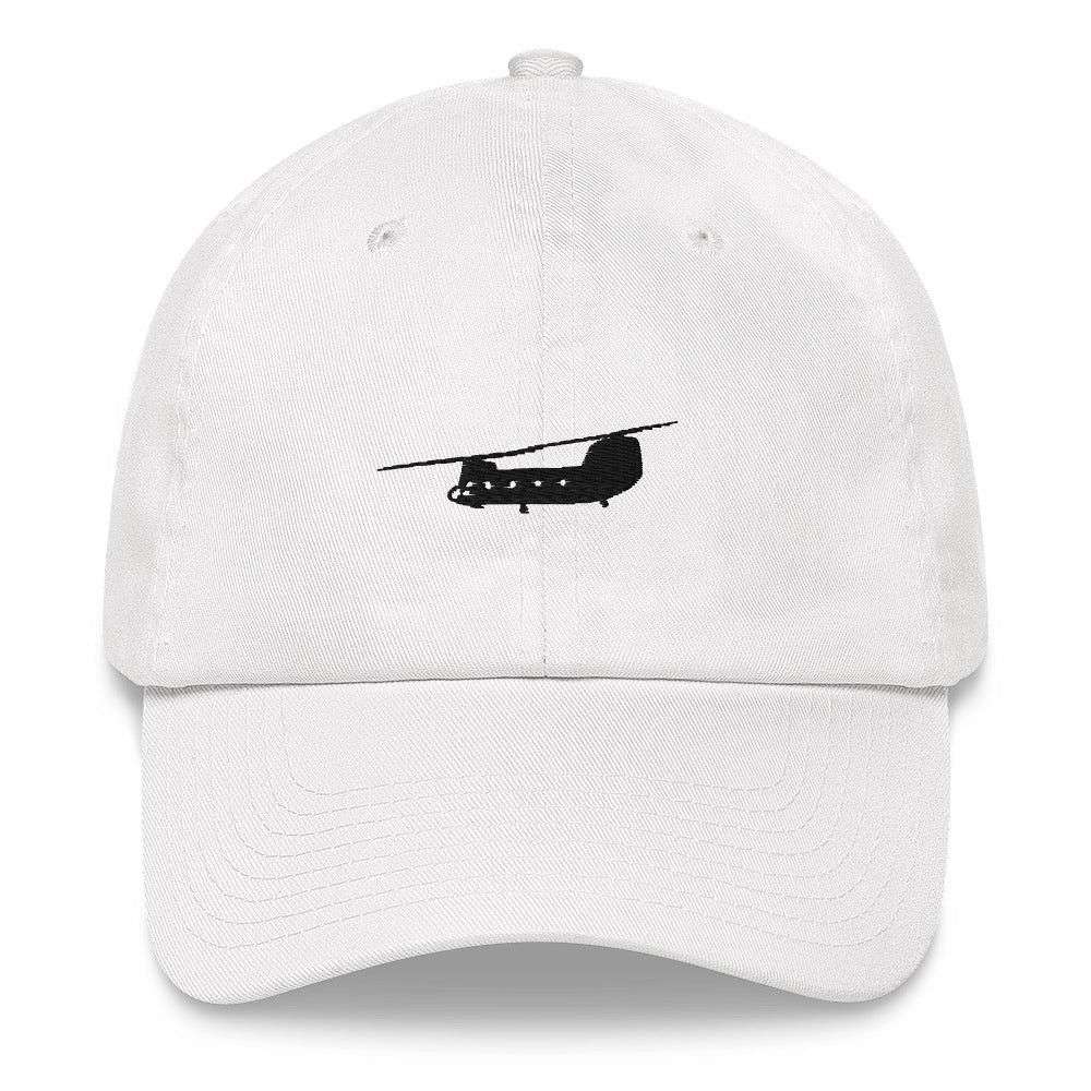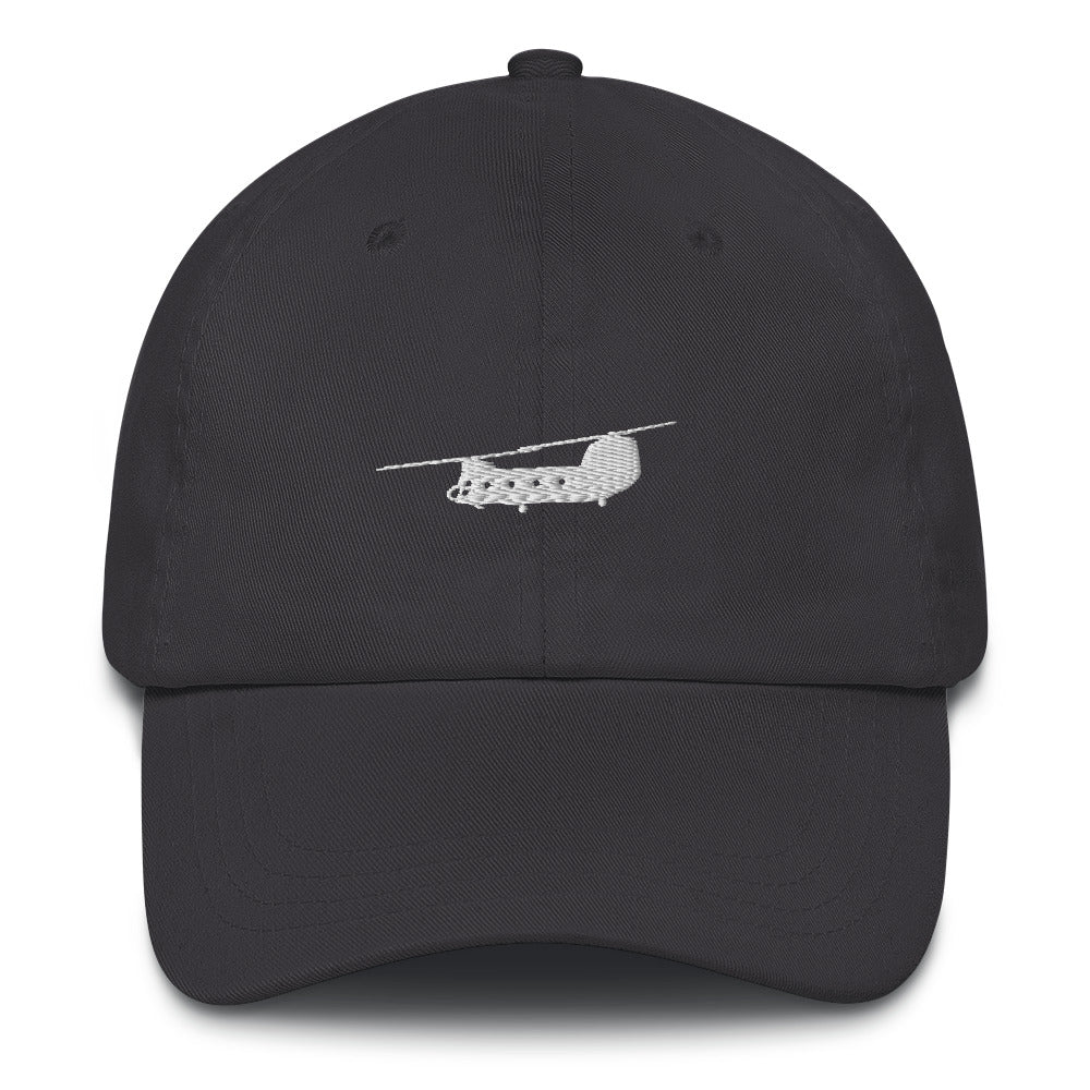 The Boeing CH-47 Chinook is probably one of the most recognizable helicopters due to its twin rotors. This thing has been around for a long time, from serving in Vietnam to providing disaster relief. we tried to capture its silhouette on this hat.
