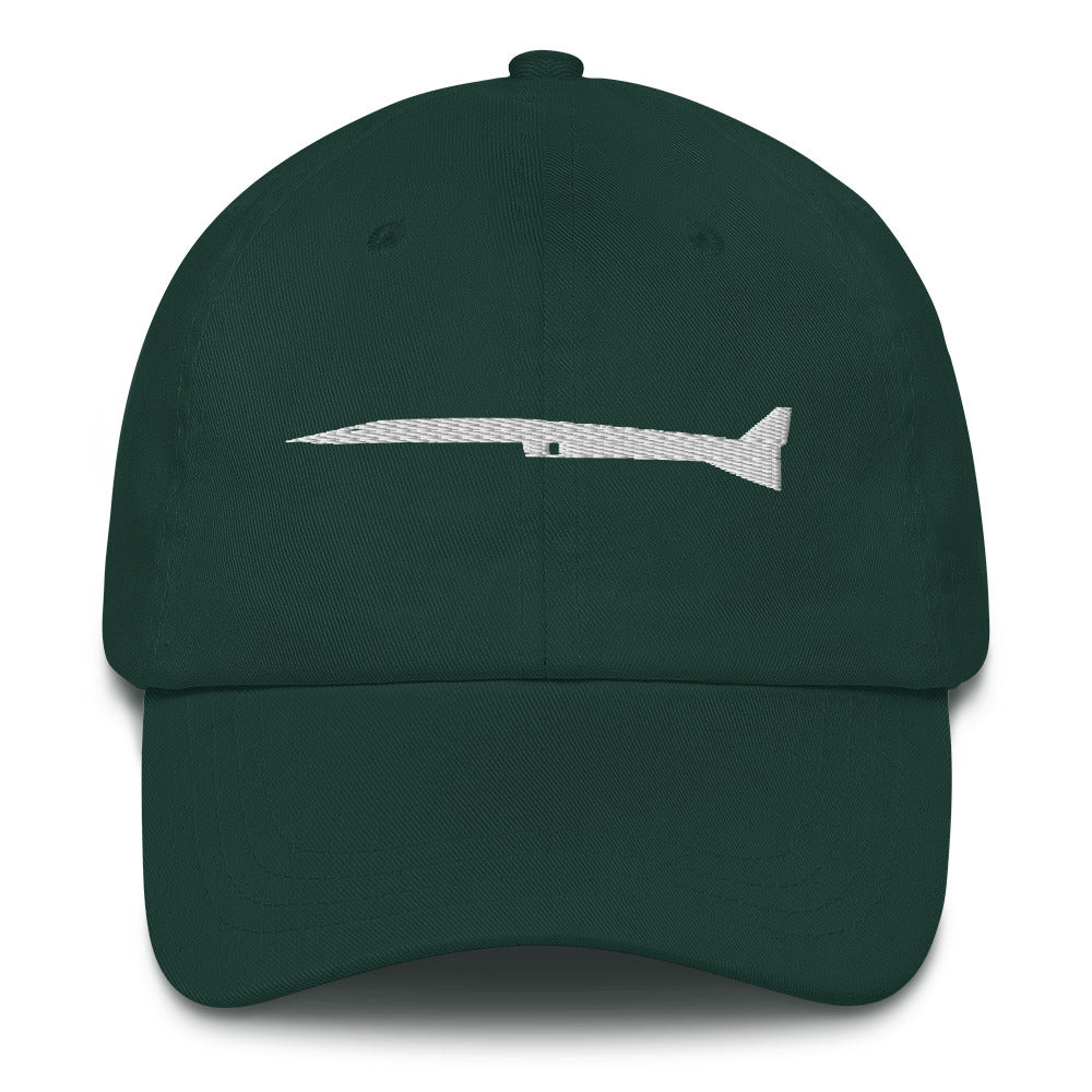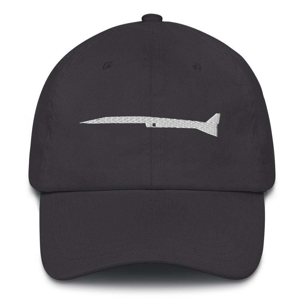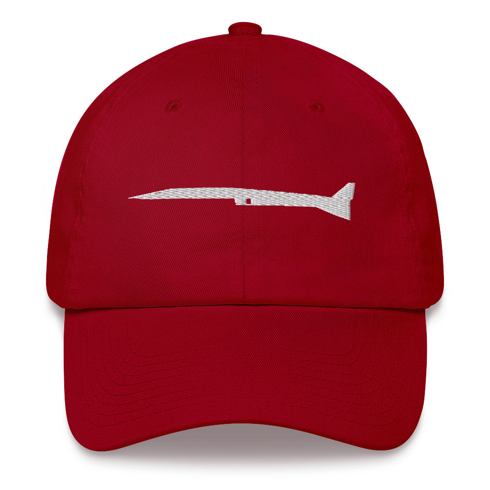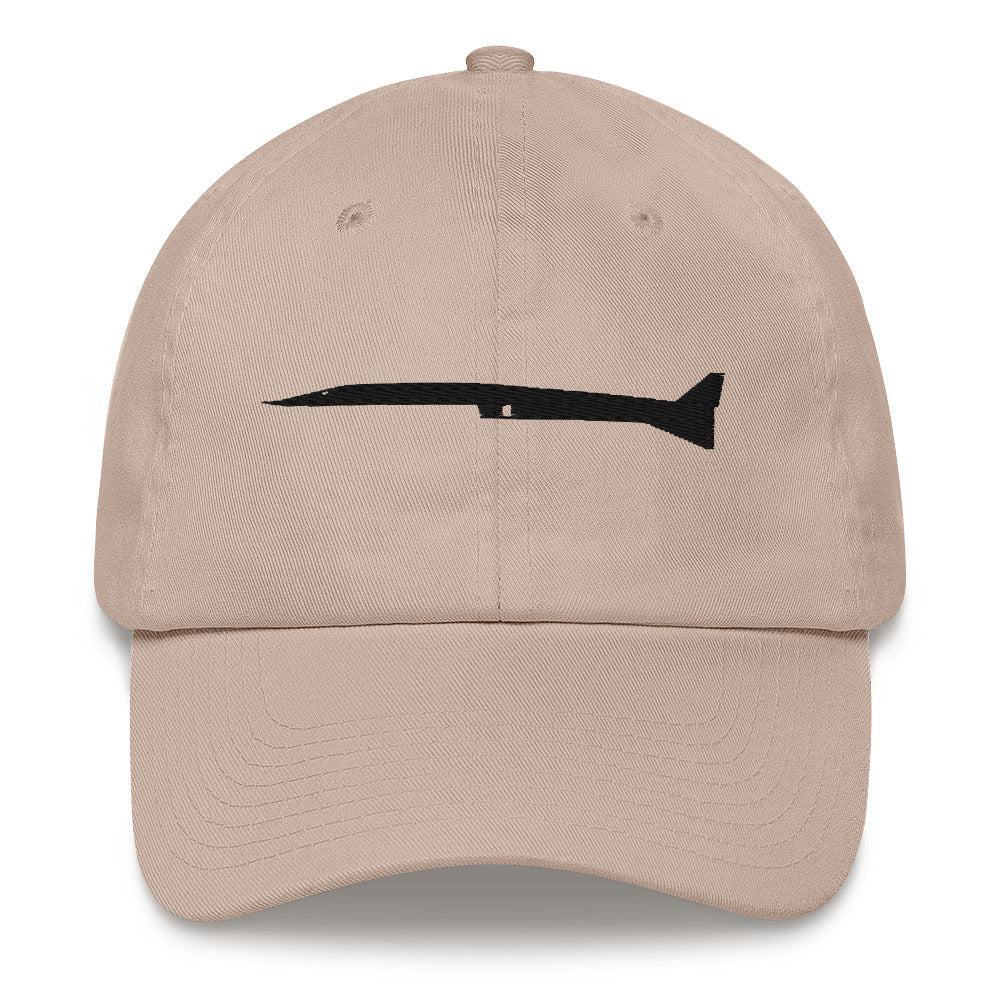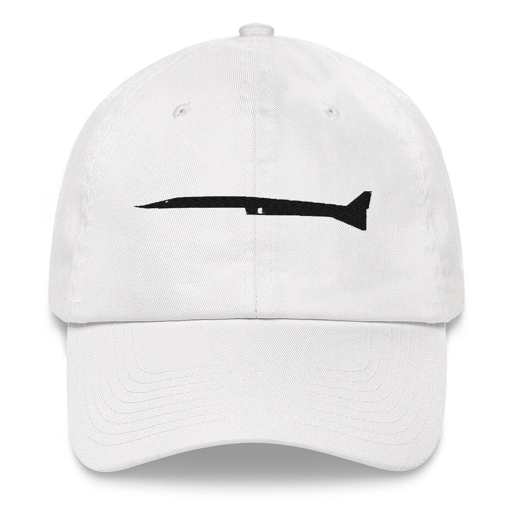The bomber that never was. The XB-70 Valkyrie was a project to develop a Mach 3.0+ bomber. This plane was able to do it, but the program was cancelled before it was really ever produced. This was mostly due to the takeover of ICBMs for strategic strike, but also due to the accident that occured with this plane during a photo op. Regardless, this is one of the prettiest planes ever developed, and its silhouette is captured in this hat.