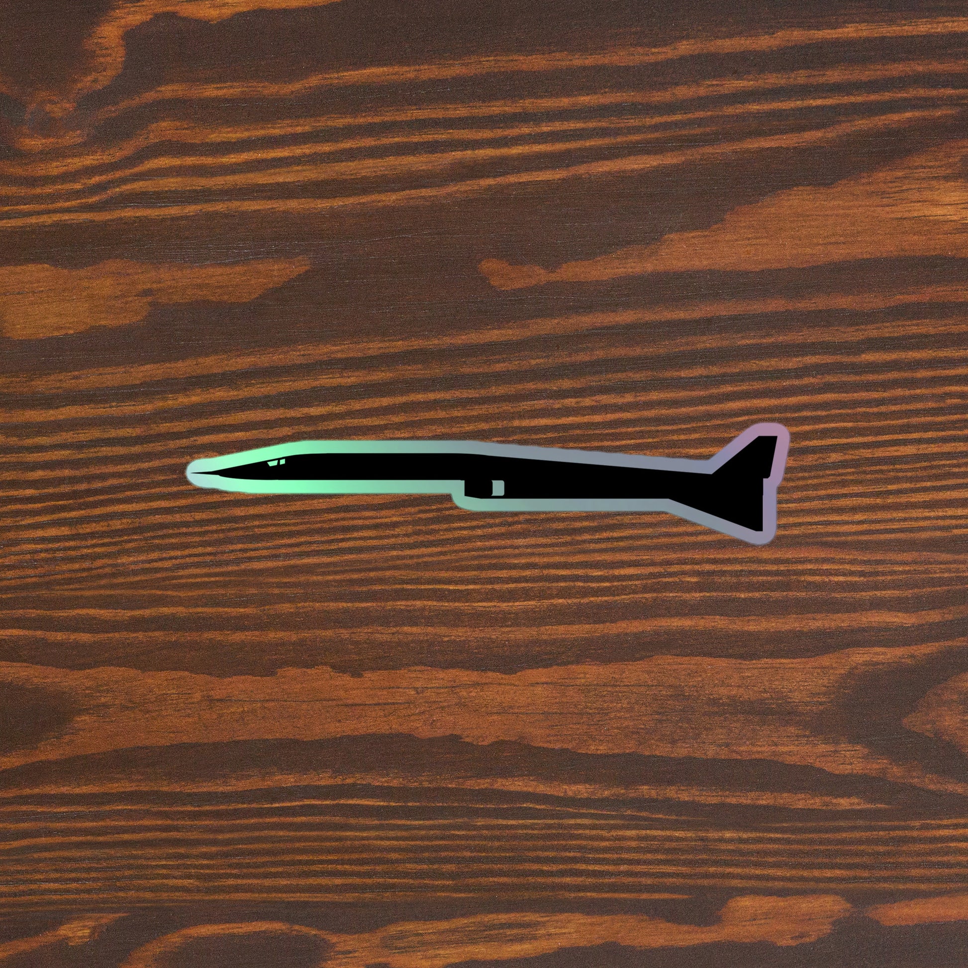 Size is 5.5” x 5.5”. The bomber that never was. The XB-70 Valkyrie was a project to develop a Mach 3.0+ bomber. This plane was able to do it, but the program was cancelled before it was really ever produced. This was mostly due to the takeover of ICBMs for strategic strike, but also due to the accident that occured with this plane during a photo op. Regardless, this is one of the prettiest planes ever developed, and its silhouette is captured in this sticker.